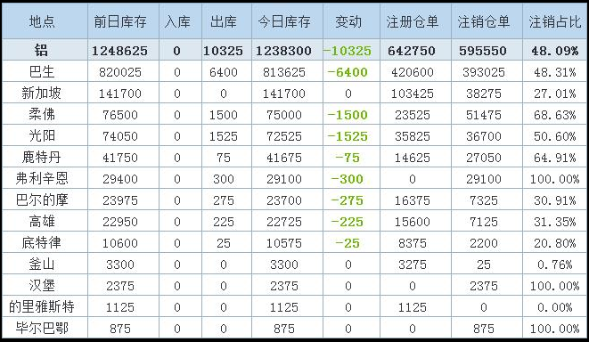 LME鋁庫存及倉單統(tǒng)計(jì)(20251210)